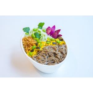 HAN (Nouilles Soba, Salade, Edamame, Algues Nori, Maïs, Oignons rouges, Graines de sésame, Oignons frits, Coriandre, Sauce sucrée/salée) / 240 kcal* Sur demande : «Végétarien ou Vegan»