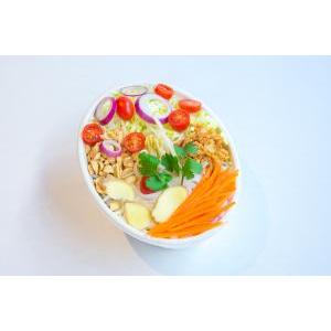 PAD (Pâtes de riz, Carotte, Germes de soja, Choux blanc, Oignons rouges, Ciboulette, Cacahuète, Oignons frits, Coriandre, Sauce acidulée) / 320 kcal* Sur demande : «Végétarien ou Vegan ou Sans Gluten»