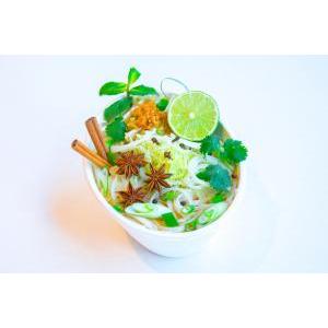 PHO (Pâte de riz, Bouillon chôp, Germes de soja, Oignons blanc, Salade, Oignons frits, Coriandre, Citron vert) / 280 kcal*