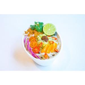 GON (Vermicelle de riz, Bouillon chôp, Tomate, Oignons rouge, Citronnelle, Galanga, Salade, Germes de soja, Coriandre, Sauce pimentée) ; / 290 kcal* Sur demande : «Végétarien ou Sans Gluten»